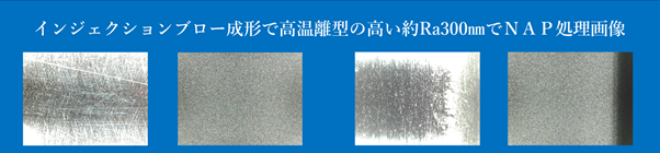 インジェクションブロー成形のインジェクションコアをNAP処理加工により、コア温度が高い状態で離型できるようになり、加工工程の改善が出来たと、顧客様より情報がありました。